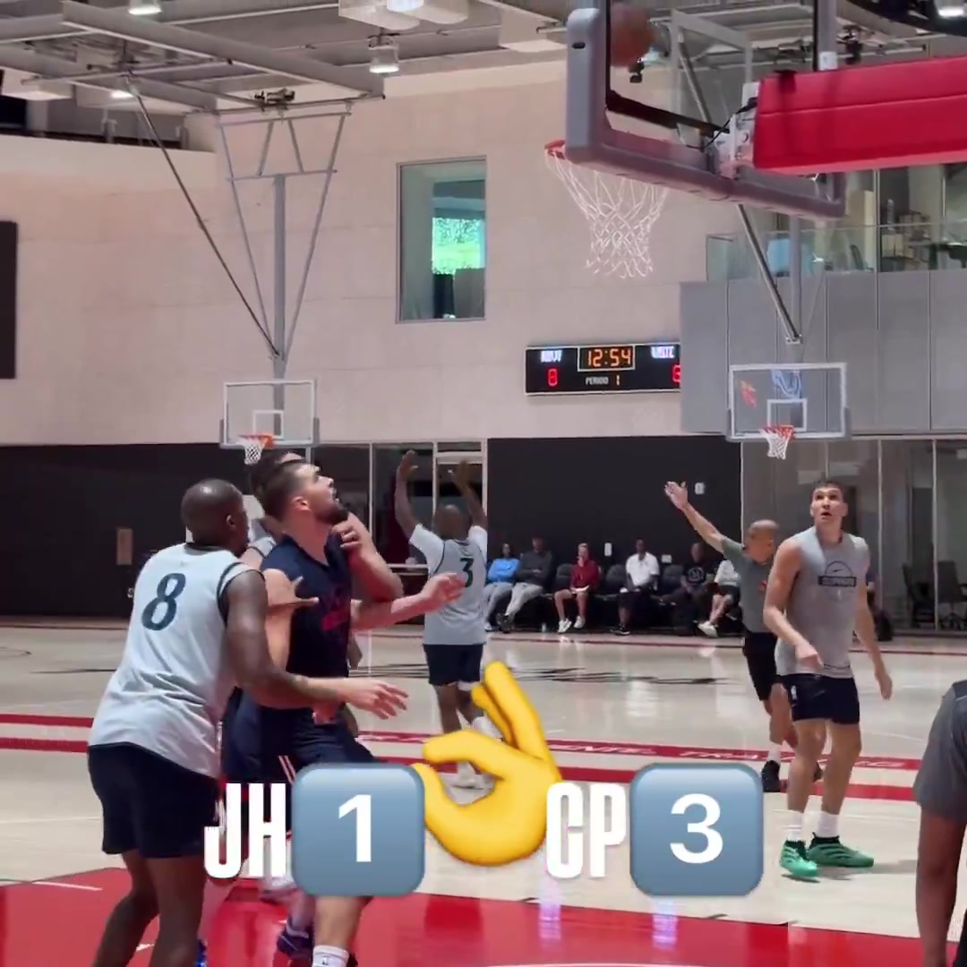 - 互不相让!哈登面对保罗飚进三分 后者底角空位回敬一球
