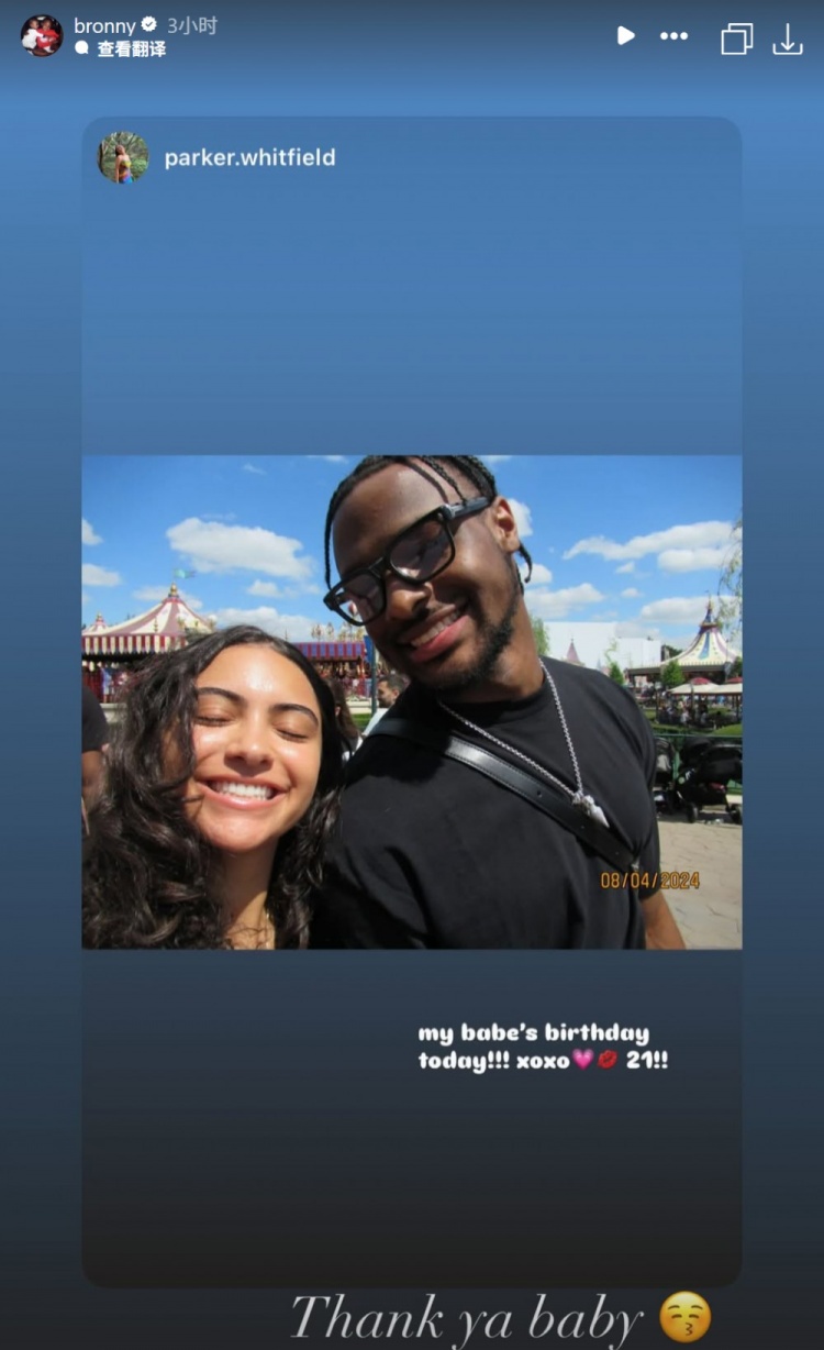 10月6日讯 今天是布朗尼的21岁生日,女友Parker Whitfield晒出了两人之前的甜蜜合照,并写到:“我的宝贝今天21岁生日,xoxo(拥抱与亲吻)。”