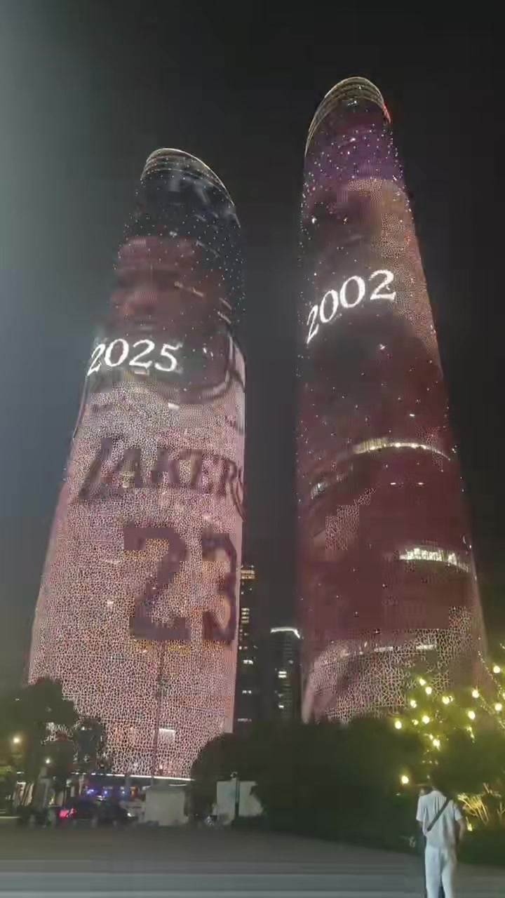 - 成都金融城双子塔今夜为詹姆斯点亮灯光秀 幼詹和老詹相视而望