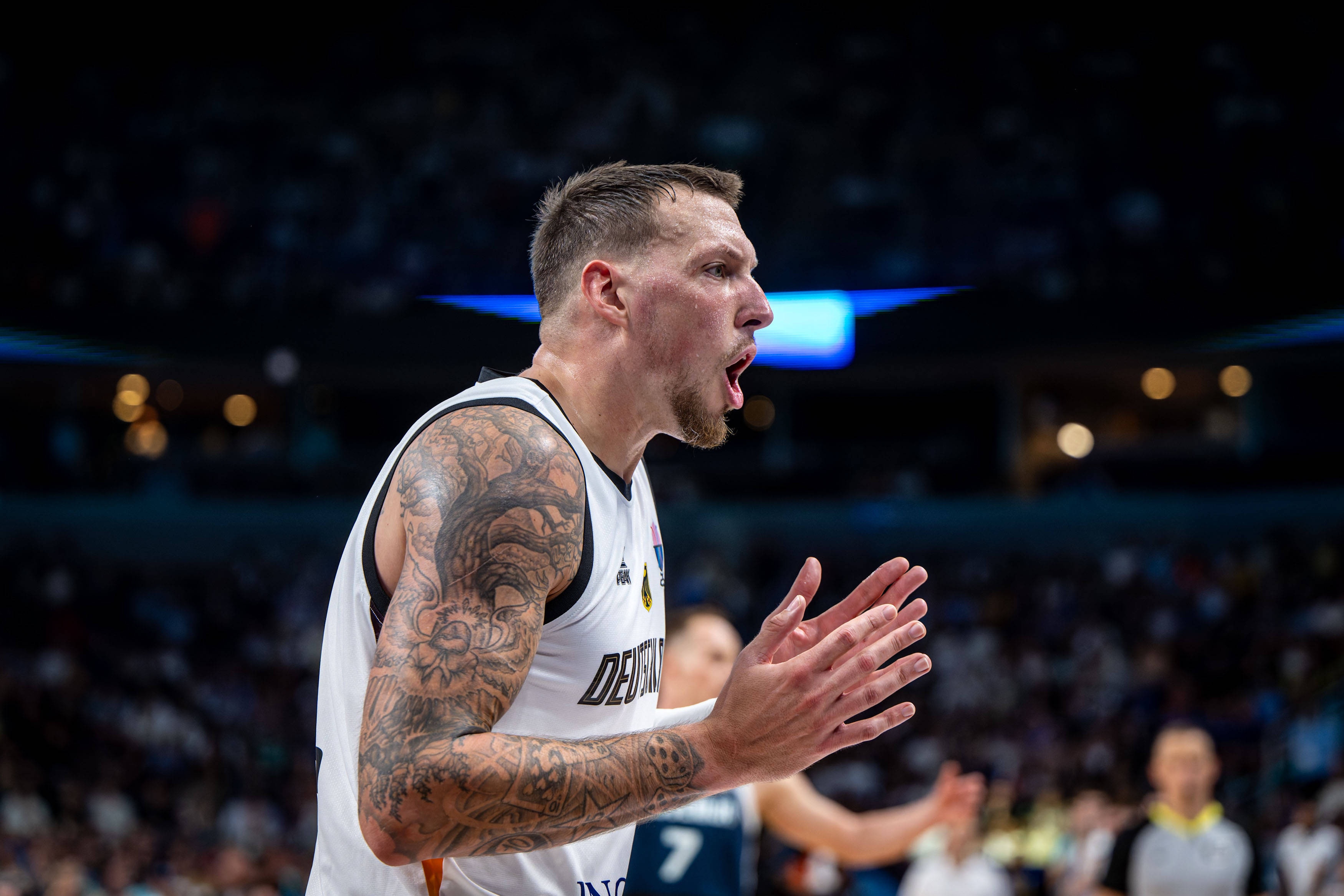 上半场,德国队球员泰斯稳定输出,打了10分钟4投3中,拿到6分7篮板,正负值+9。