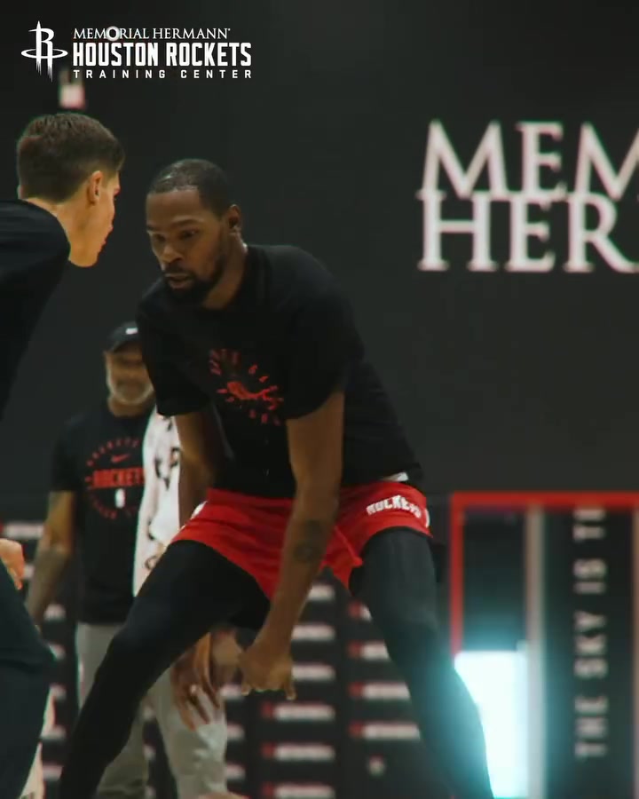 挥汗如雨!火箭官方晒杜兰特积极备战 老伙计亚当斯也现身合练