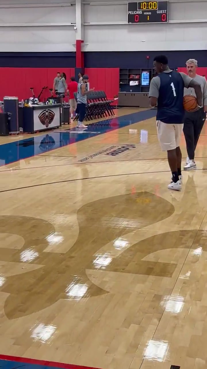 害搁那聊啥呢!训练后普尔与锡安继续讨论 两人拿球连说带比划