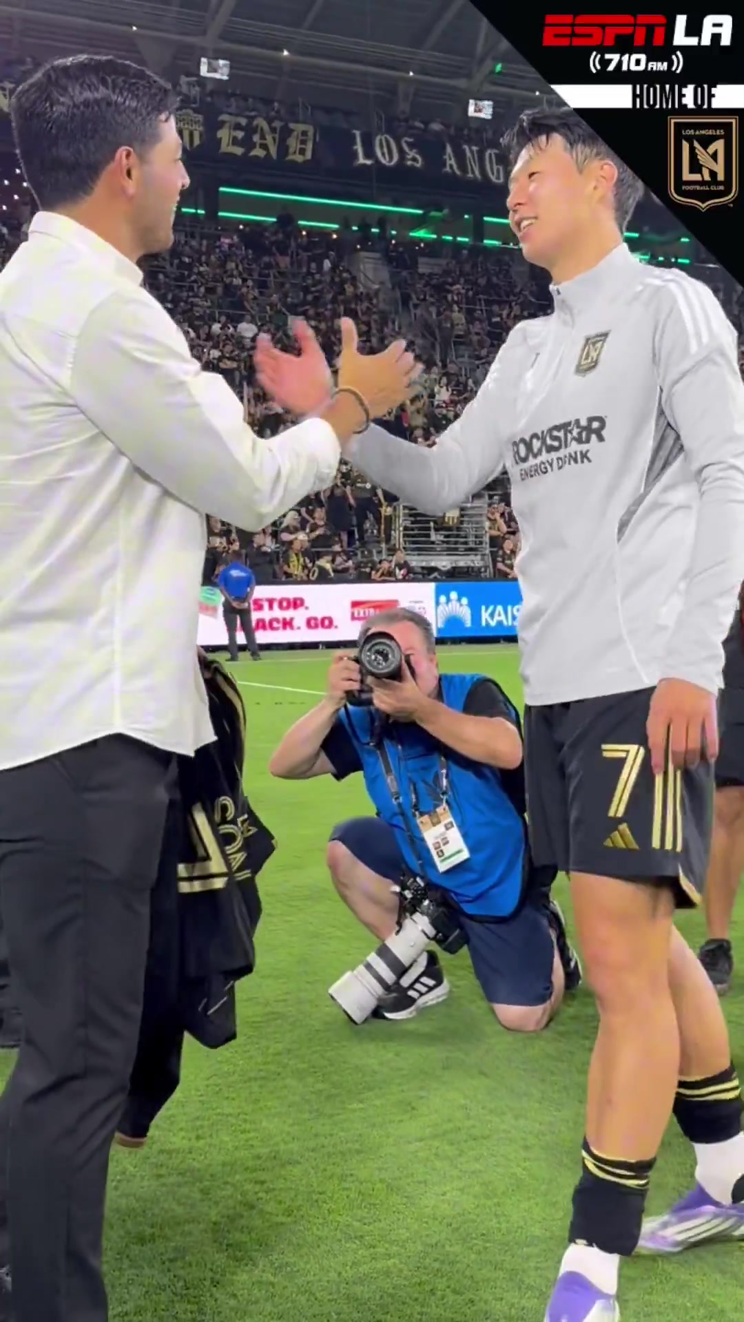 - 孙兴慜赛后与洛杉矶FC名宿卡洛斯-贝拉互动,并为他签名