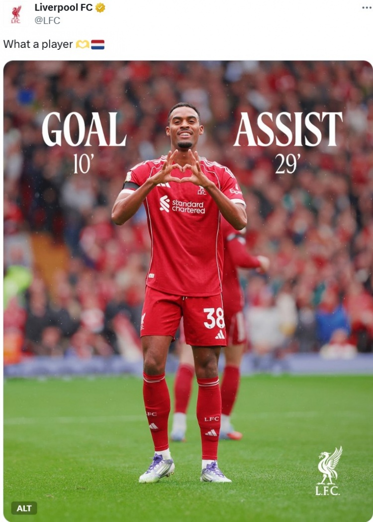 前30分钟传射建功,利物浦官推晒赫拉芬贝赫海报:多棒的球员!
