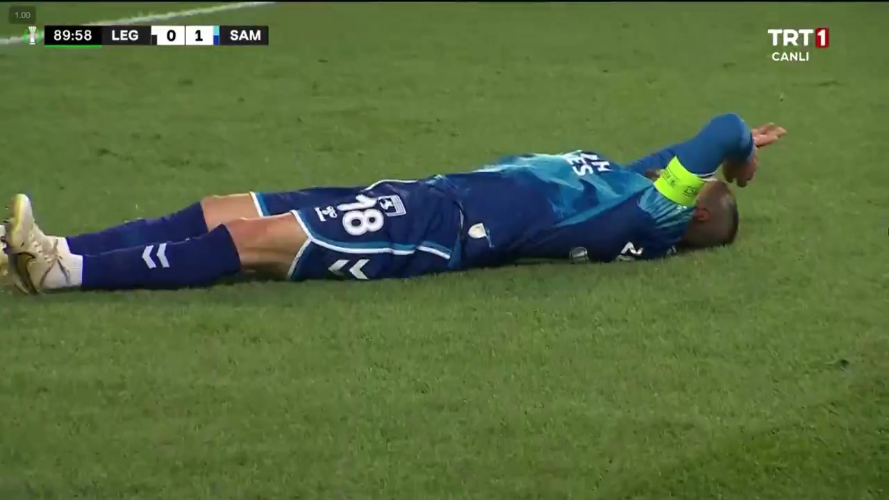萨姆松体育球员比赛尾声倒地拖延时间,对手试图将其拖出球场